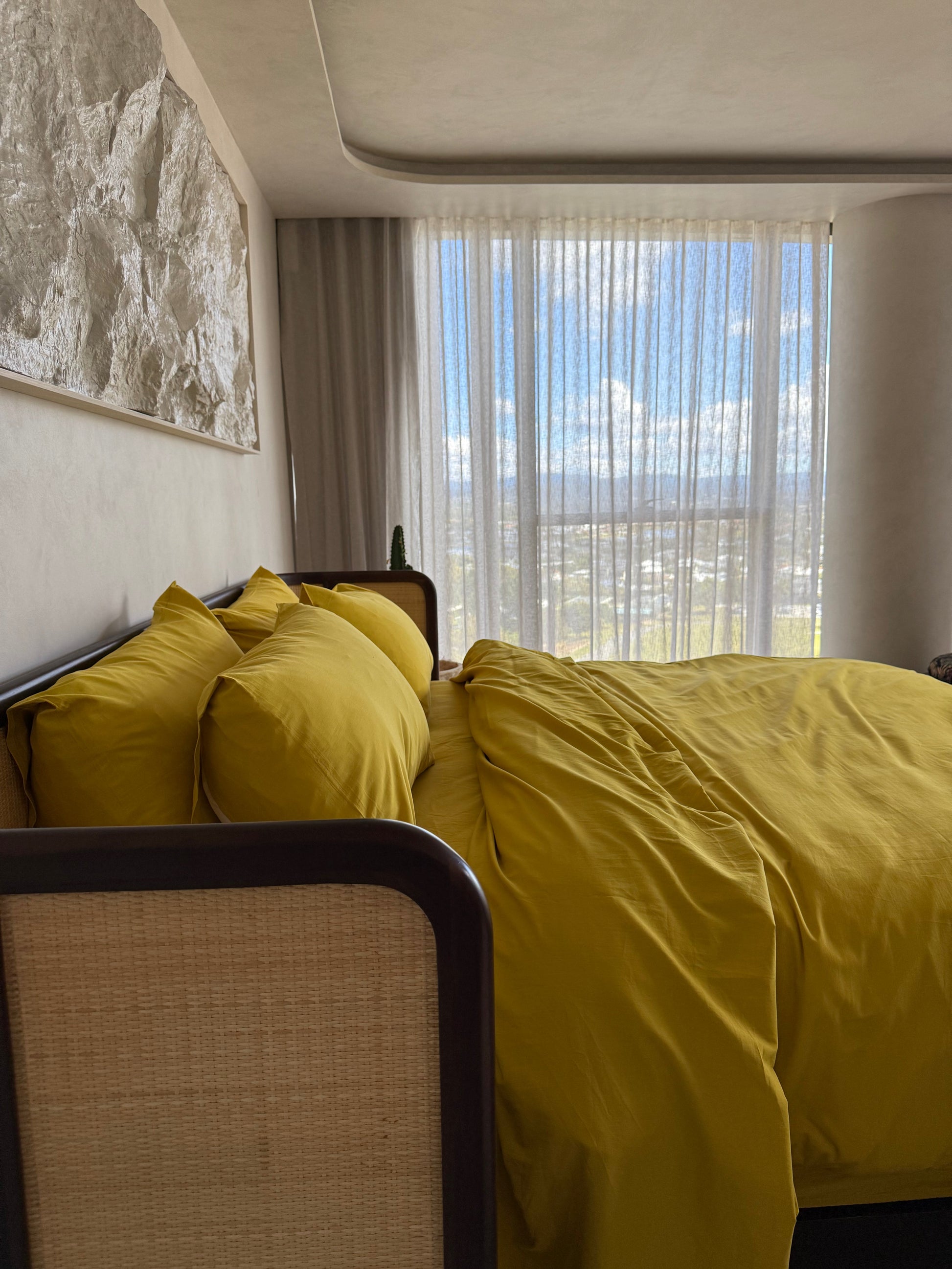 At Common Thread we use super fine long staple organic cotton then tightly weave in a special process called 'Percale basket weaving'. This creates strength with a luxurious look and feel.