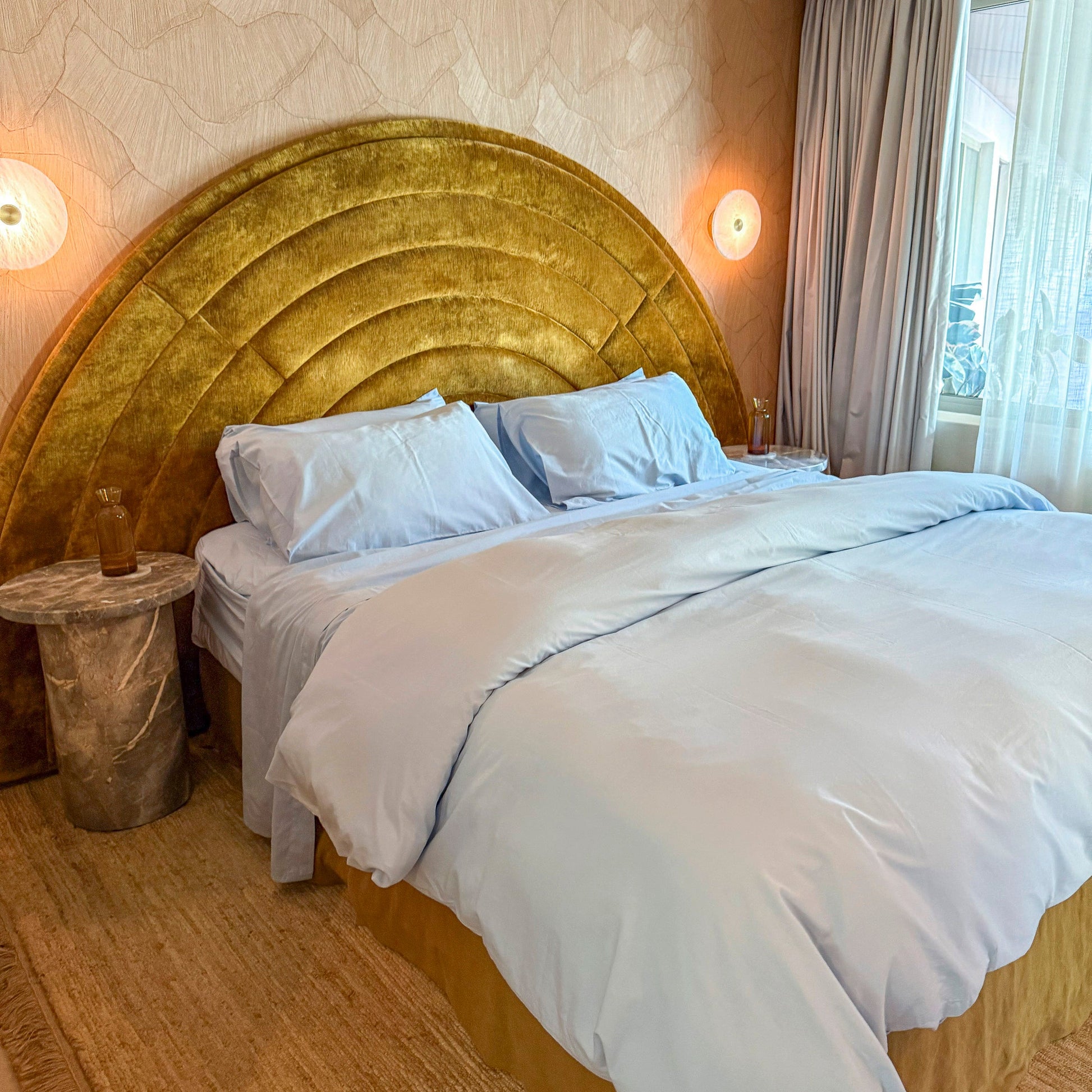 At Common Thread we use super fine long staple organic cotton then tightly weave in a special process called 'Percale basket weaving'. This creates strength with a luxurious look and feel.